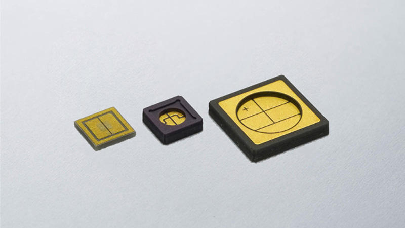 In general, ceramic thin-film circuit boards often employ solid, single-layer ceramic as a substrate material, which becomes a single-layer ceramic thin-film substrate. Kyocera offers multilayer ceramic thin-film substrates as well, which can achieve higher electrical routing density. In addition, Kyocera can propose custom designs to meet specific customer requirements, including external processing to add holes, steps, and/or grooves; applying AuSn deposition on chip mounting areas; depositing resistor patterns; and plating thicker metal patterns for high-current applications. Click below for more information.