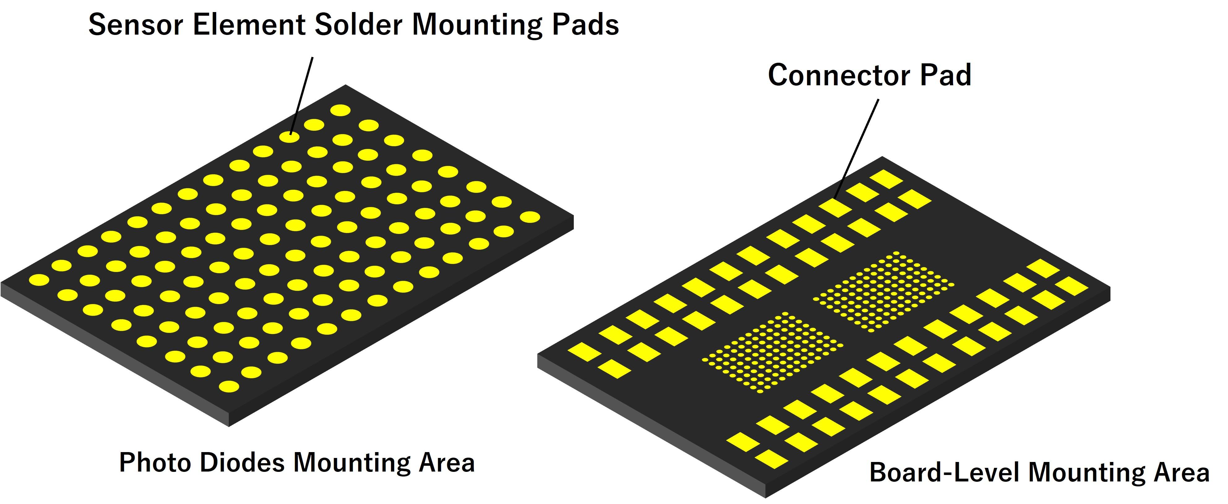 A CT scanner's X-ray detector experiences extreme centrifugal forces in high-speed rotation. To function reliably in these conditions, a ceramic substrate with superior rigidity and deformation resistance is used as an interposer for the unit's photodiodes (PDs).